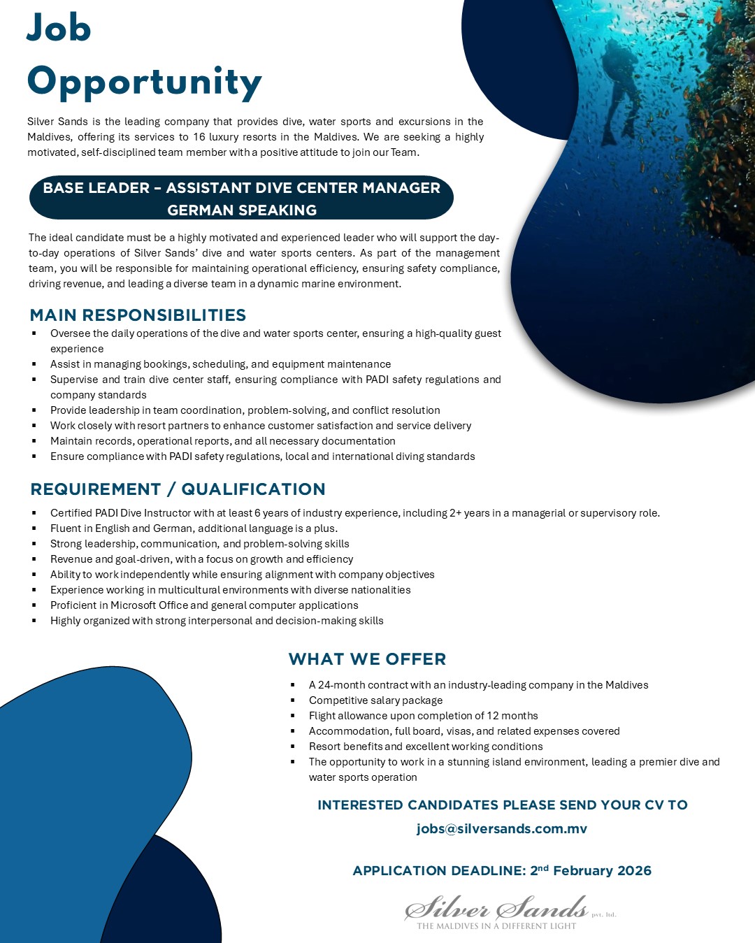 Base leader – Assistant Dive Centre Manager – German Speaking